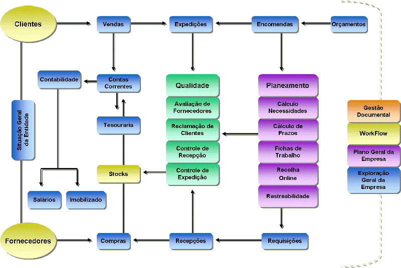 Adquirindo esta solução ERP (Enterprise Resource Planning) passará a ter uma visão global da empresa assim como de cada um dos seus departamentos. Agregando todos os processos de negócio e gestão num único produto integrado o gestor ficará munido de uma arma poderosa para competir num mercado cada vez mais concorrente e em permanente mudança.